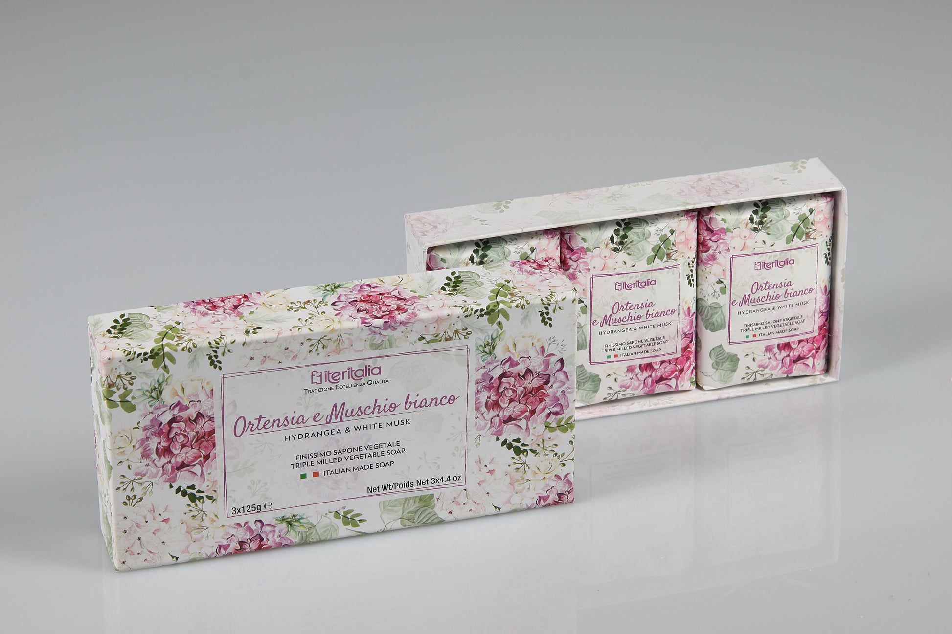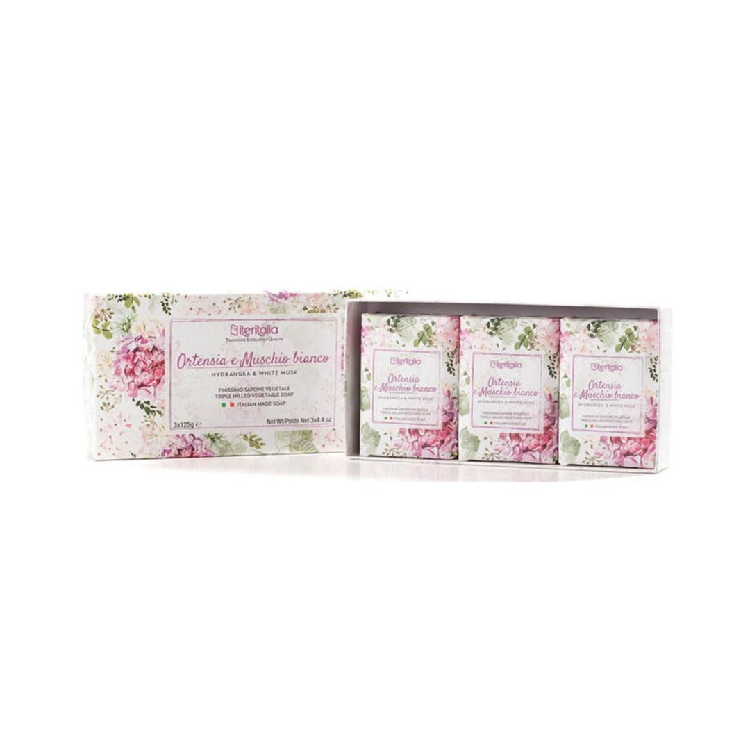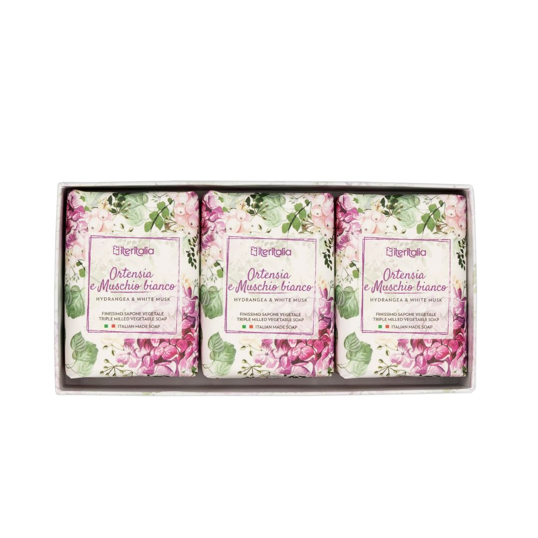 Darčeková kazeta rastlinných mydiel - Hortenzia a biele pižmo