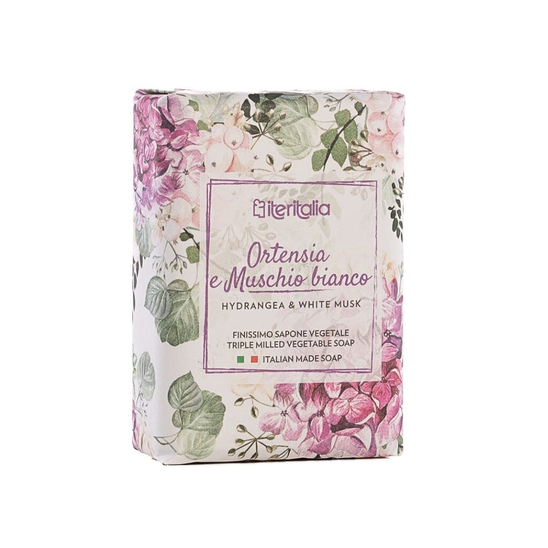 Iteritalia Talianske rastlinné mydlo Hortenzia a Biely mach, 125 g
