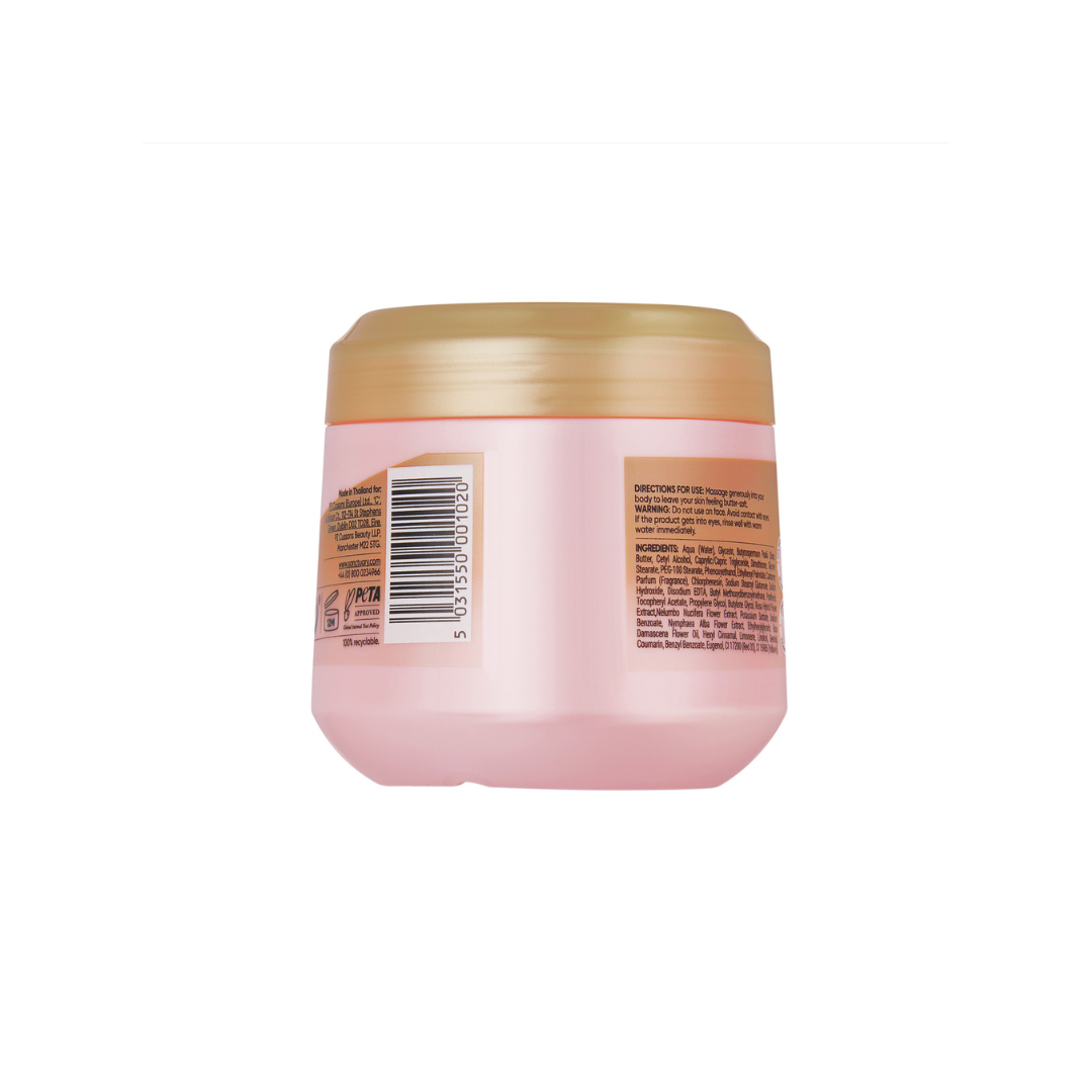 Toto telové maslo je obohatené o maslo karité, vodu z ruží, lekno a Aloe Vera. Pokožku zanechá jemnú, vyhladenú a krásne prevoňanú. Uniknite do záhrad plných kvetov.