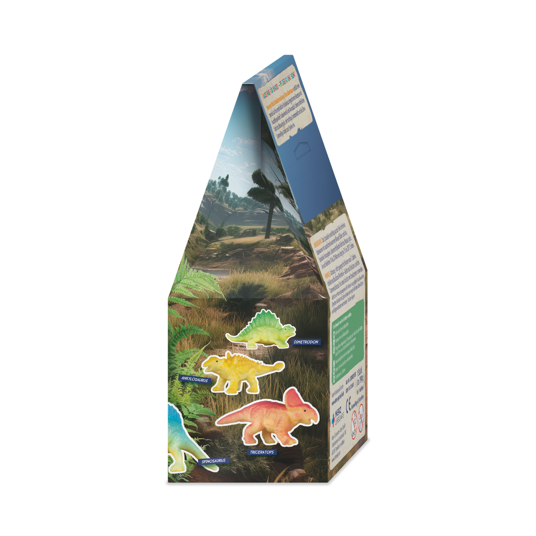 Dobrodružstvo s dinosaurami obsahuje zloženie špeciálne prispôsobené citlivej detskej pokožke, s ošetrujúcim olejom z hroznových jadierok a avokádovým olejom. Navyše zafarbí vodu na zeleno a prevonia kúpeľňu ovocnou vôňou limetky. Vo vnútri na vás čaká jeden zo šiestich dinosaurov. Produkt je vegánsky a jeho znášanlivosť s pokožkou bola dermatologicky potvrdená.