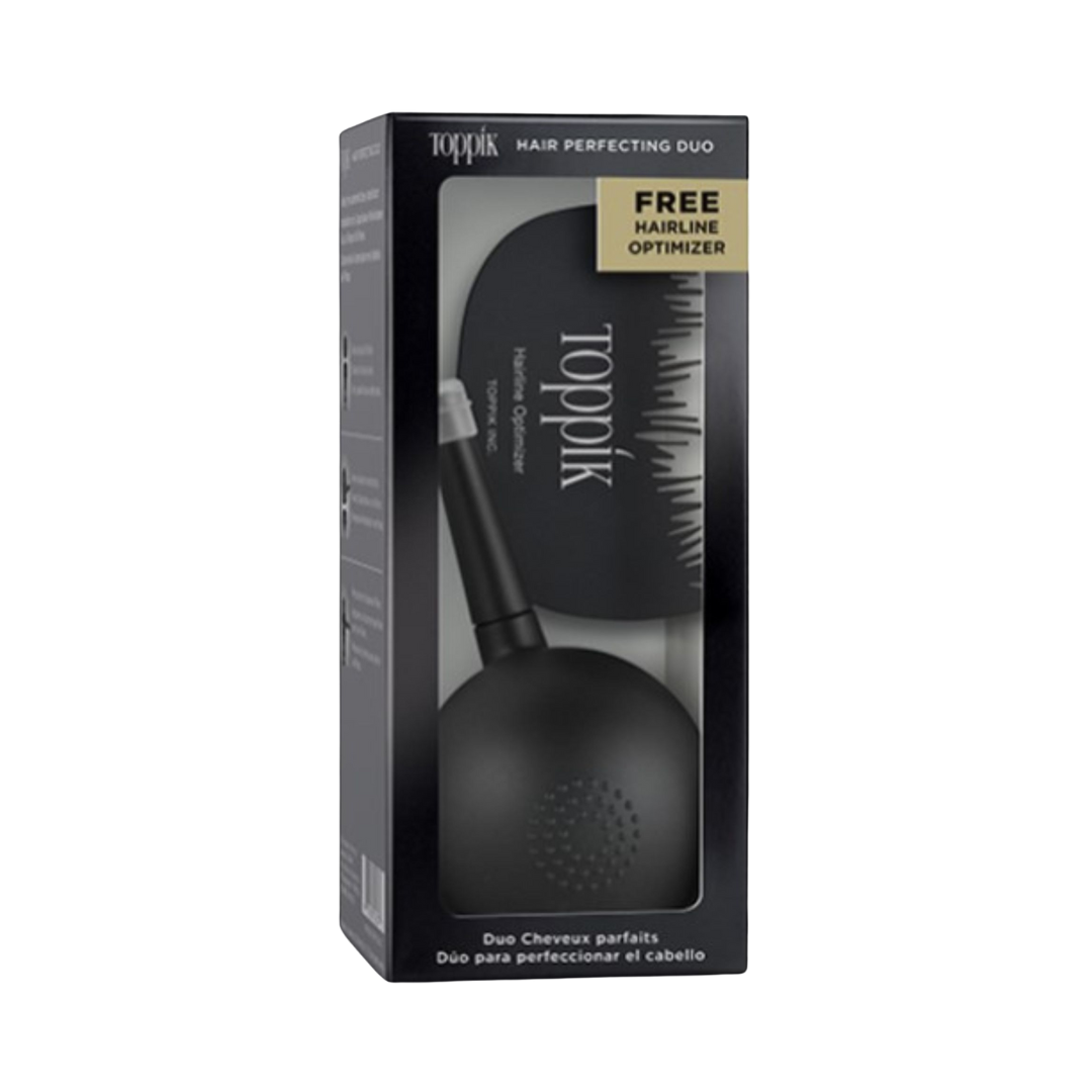 Toto nenahraditeľné DUO obsahuje nástroje, ktoré potrebuješ pre bezchybnú aplikáciu Toppík Vlasových vlákien. Vytvor vzhľad plnších a hustejších vlasov, zakry cestičku alebo odrasty pomocou týchto dvoch nevyhnutných nástrojov spoločne s Toppík Vlasovými vláknami. Patentovaný Toppík Sprejový aplikátor zaisťuje presnú aplikáciu na cielené miesta a zároveň poskytuje krytie. Šablóna vlasovej línie je jedinečne navrhnutá s nepravidelnými zubami, ktoré napodobňujú prirodzene vyzerajúcu líniu predných vlasov.